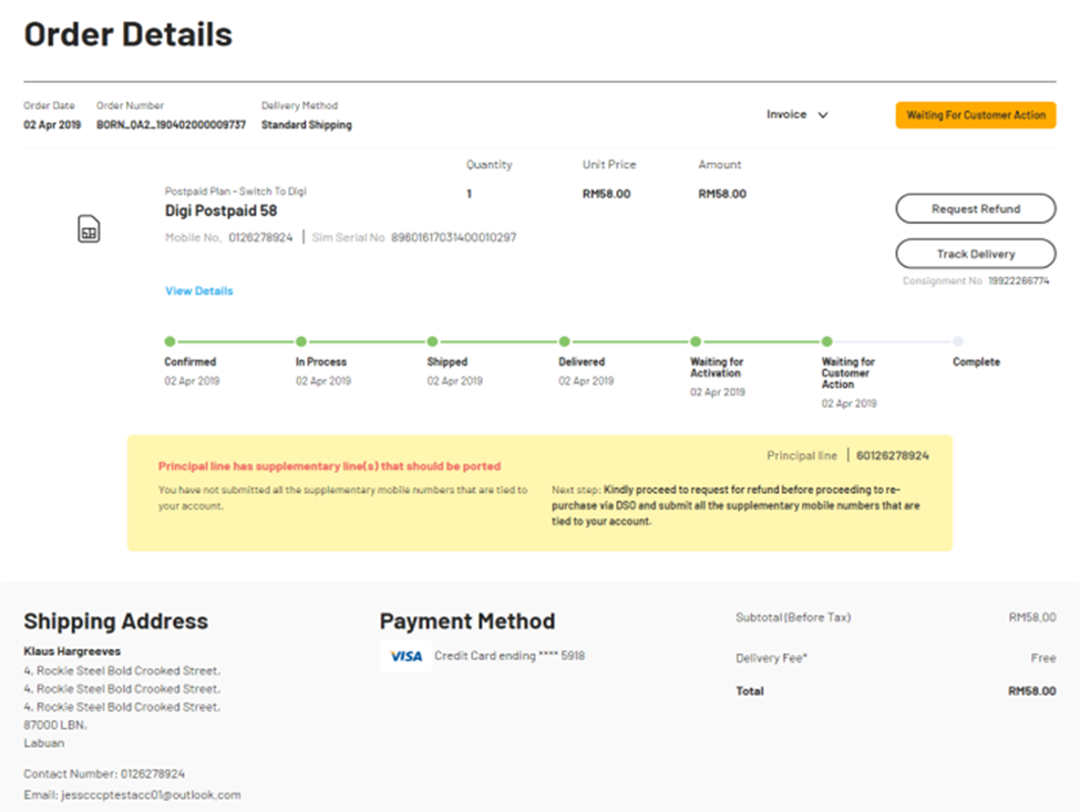 Runcit (Retail) | ✘ | ✔ Dibayar semasa lawatan ke kedai selepas pemindahan masuk/ port-in berjaya | ✔ Dalam bil pertama | ✔ Dalam bil pertama |