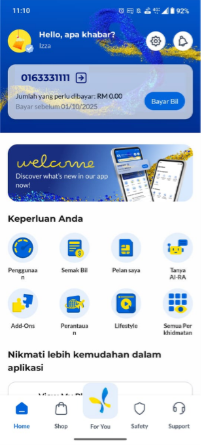 Aplikasi CelcomDigi | Waktu pemprosesan adalah dalam tempoh 2 jam. Di halaman utama, klik ‘Semak Bil’ atau ‘Lihat Semua’ di bawah bahagian ‘Keperluan Anda’. Seterusnya, pilih ‘Bayar Bil Sendiri’ untuk membayar bil anda, atau ‘Bayar Bil Nombor Lain’ jika anda ingin membuat bayaran bil bagi pihak orang lain.